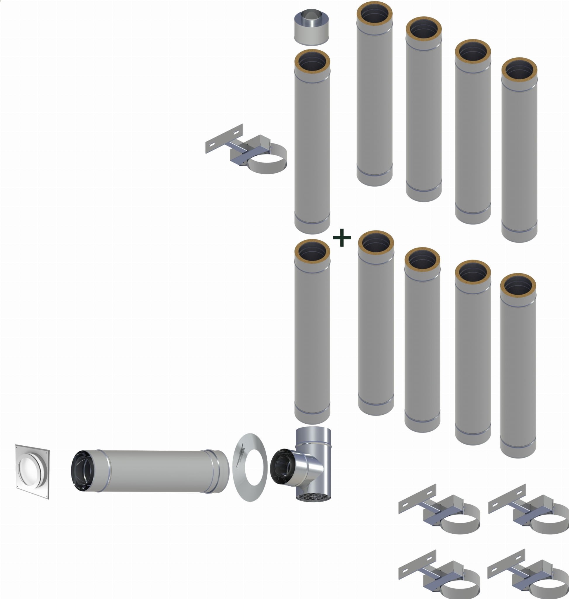 Do 200 Pa, szczelny, dwuścienny komin ze stali nierdzewnej wykonany z wysokiej jakości stali nierdzewnej do instalacji jako komin na zewnątrz. Niezbędną izolację cieplną zapewnia izolacja mineralna o grubości 22,5 mm między rurami wewnętrzną i zewnętrzną. W zależności od odpowiedniego materiału uszczelniającego, nadaje się do podłączenia do nowoczesnych pieców kondensacyjnych olejowo-gazowych o temperaturze spalin do 120 °C . Uszczelka EPDM