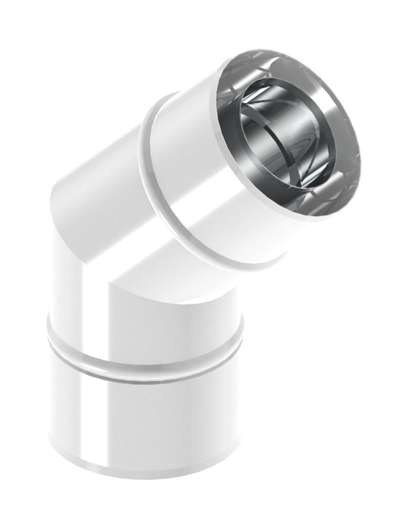 Kolano koncentryczne 60*100/45 stopni z uszczelką malowane na biało