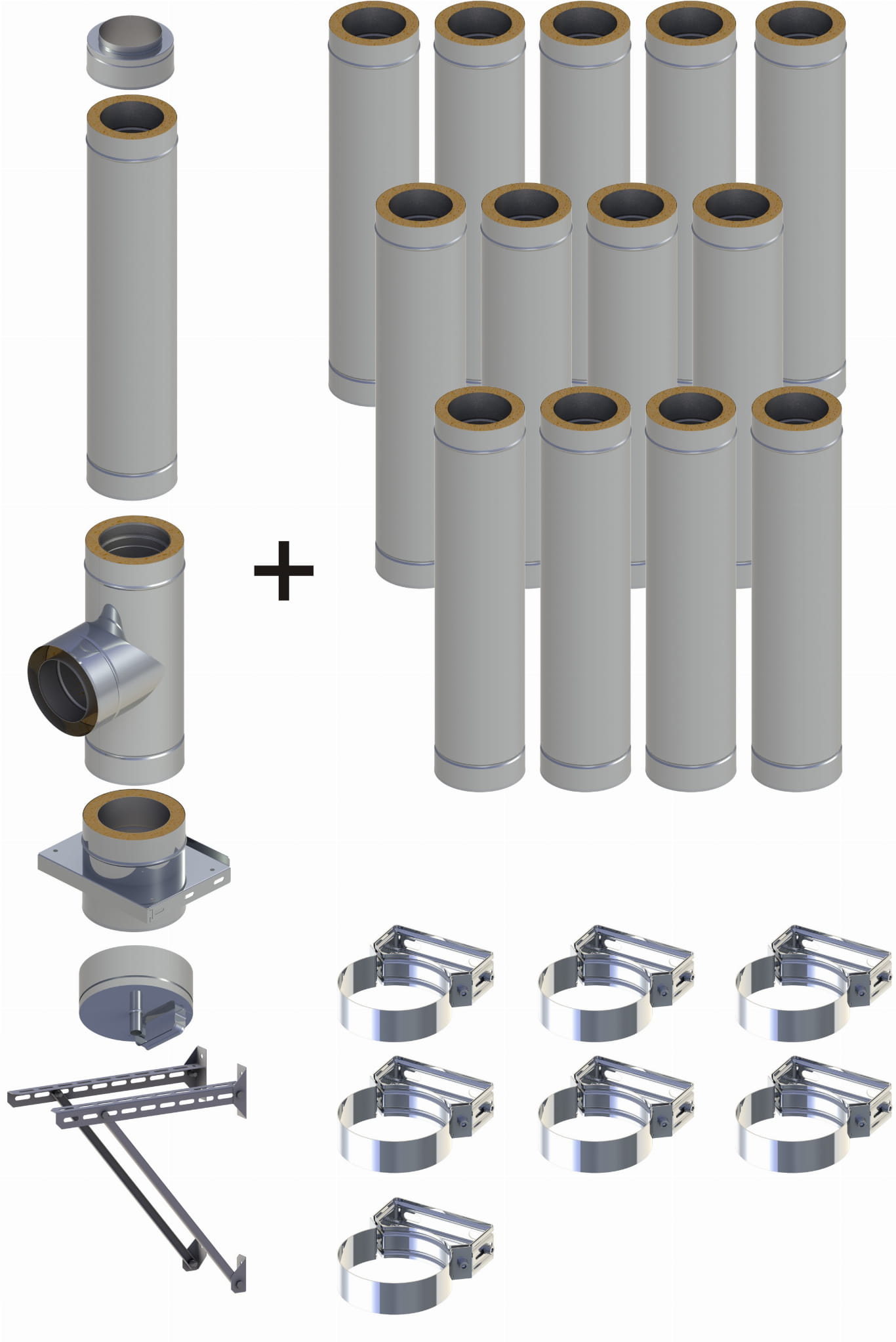 Komin dwuścienny, izolowany , wiszący, 180/230mm 0,8mm 14 rur