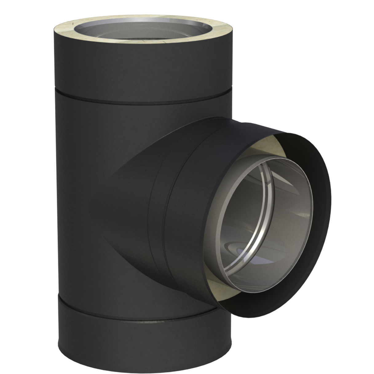 DW-BLACK to dwuścienny system kominowy z wewnętrznym rdzeniem spalinowym wykonanym ze stali nierdzewnej i zewnętrznym płaszczem osłonowym ze stali ocynkowanej malowanej na czarno RAL9011MB- MB oznacza brusy mat- czyli drobna struktura.